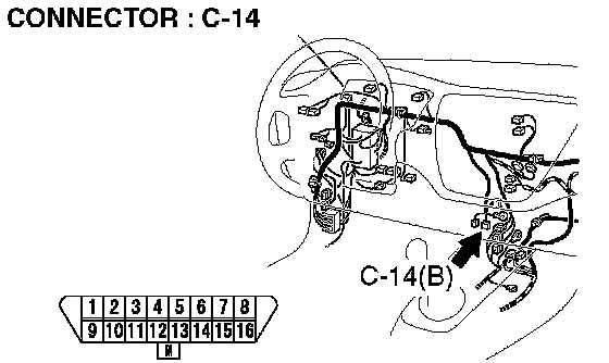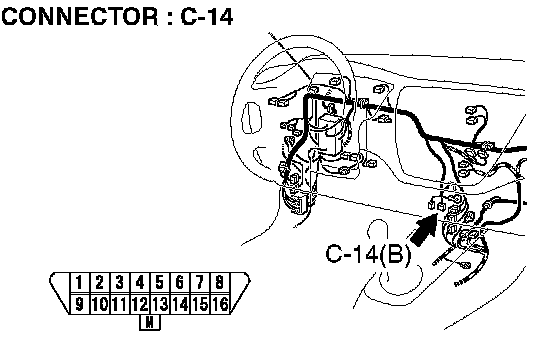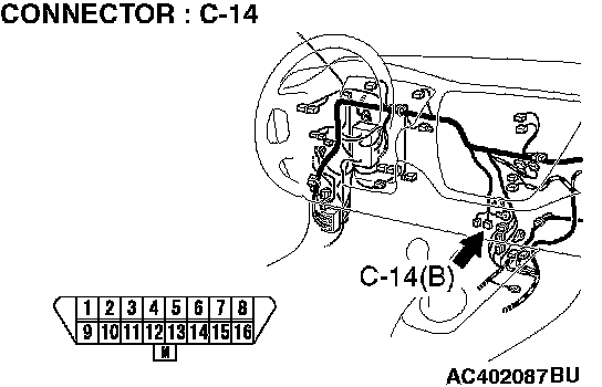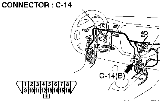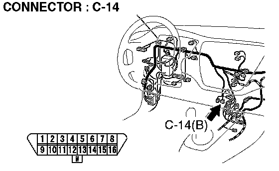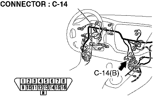 STEP 5. Check data link connector C-14 for loose, corroded or damaged terminals, or terminals pushed back in the connector.