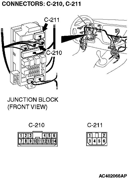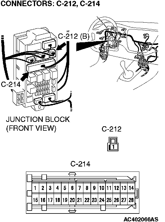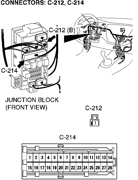 STEP 2. Check data link connector C-14, intermediate connector C-126, junction block connector C-212, C-214 for loose, corroded or damaged terminals, or terminals pushed back in the connector.
