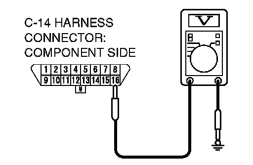 Measure the voltage between data link connector C-14 terminal 16 and ground.