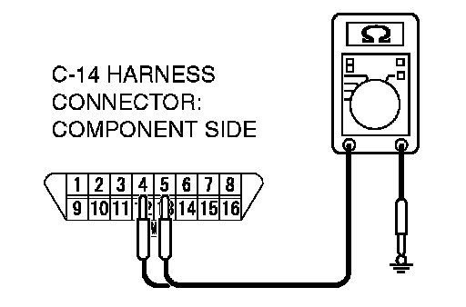 STEP 4. Measure the ground circuit for resistance at the data link connector C-14.