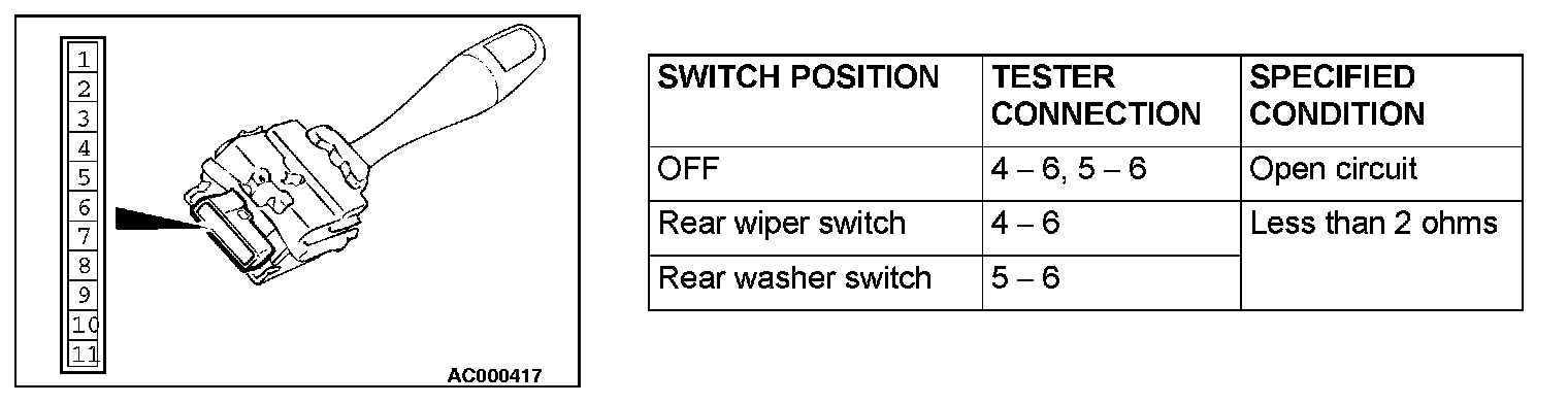 REAR WIPER AND WASHER SWITCH CHECK