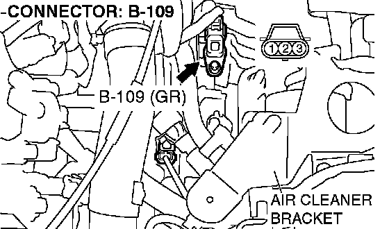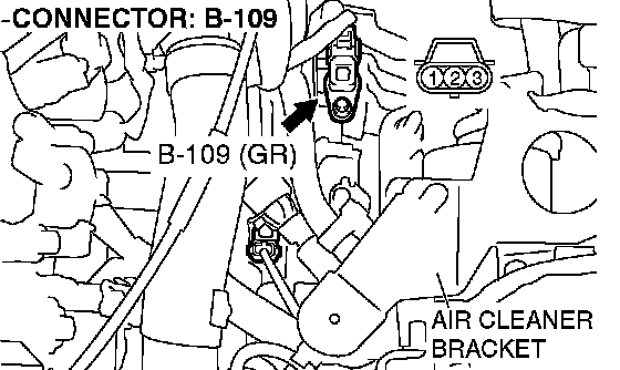 1) Disconnect connector B-109 from the speed sensor and measure voltage at the harness side.