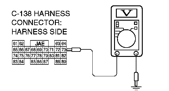 STEP 6. Measure the PCM output voltage to the speed sensor at the PCM connector C-138 by backprobing.