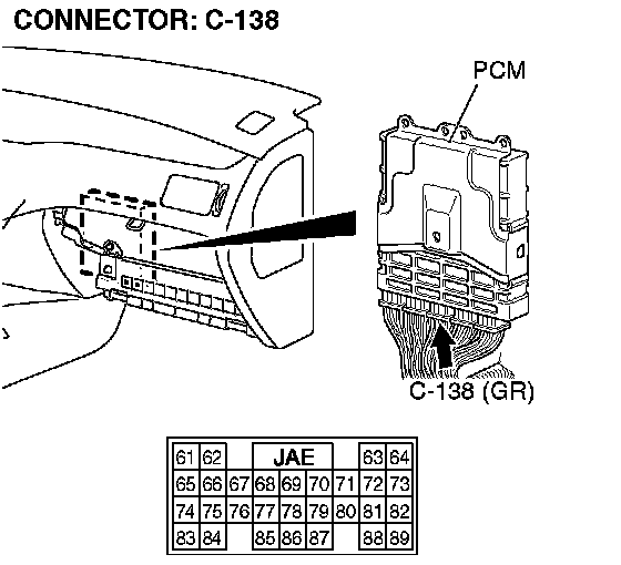 STEP 15. Check PCM connector C-138 for loose, corroded or damaged terminals, or terminals pushed back in the connector.