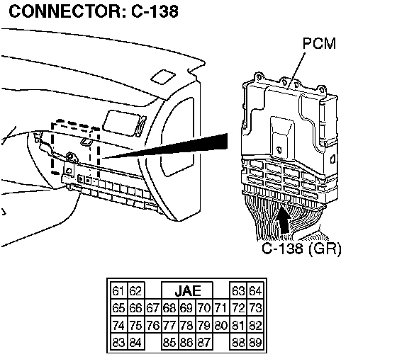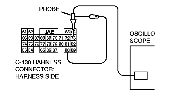 2) Connect an oscilloscope probe to PCM connector C-138 terminal 73 and 88.