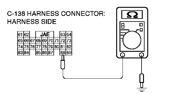 STEP 12. Measure the resistance at the PCM connector C-138 by backprobing.