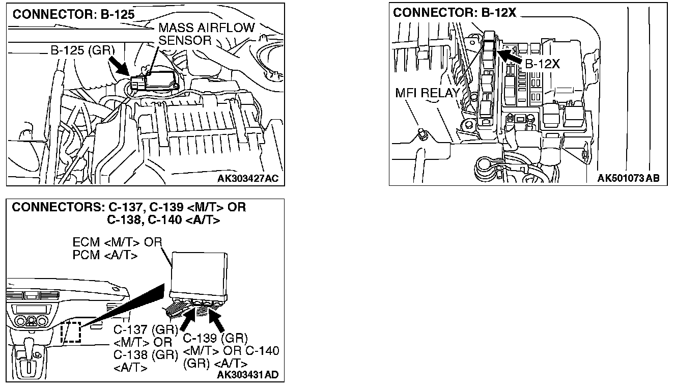STEP 2. Check harness connector B-125 at mass airflow sensor for damage.