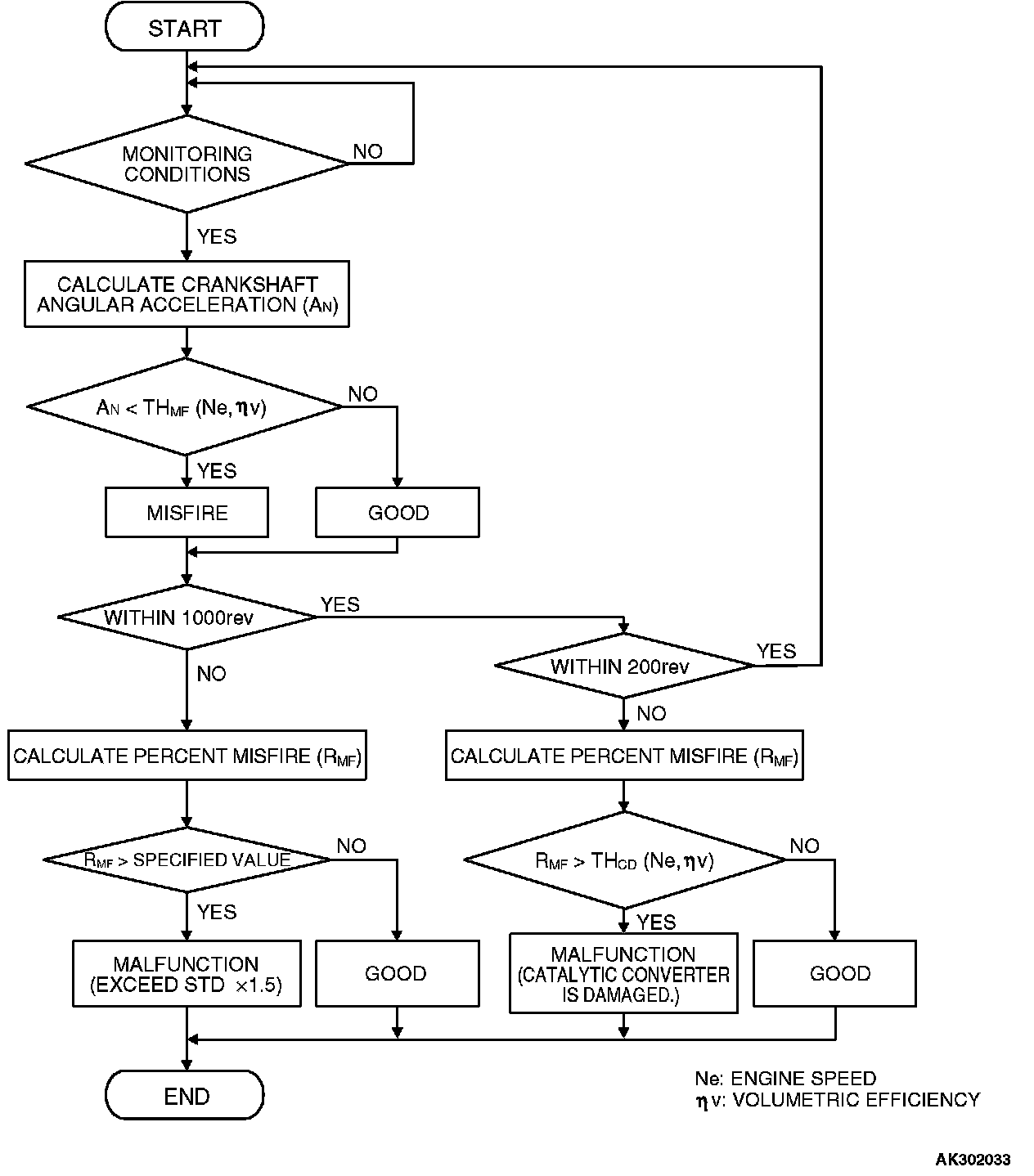 - Misfire has occurred more frequently than allowed during the last 200 revolutions [when the catalyst temperature is higher than 950 degrees C (1742 degrees F)].