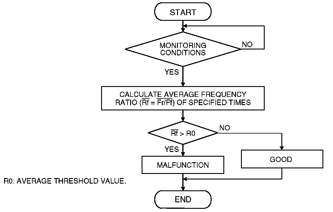 - The heated oxygen sensor (rear) signal frequency divided by heated oxygen sensor (front) signal frequency = 0.4 or more.