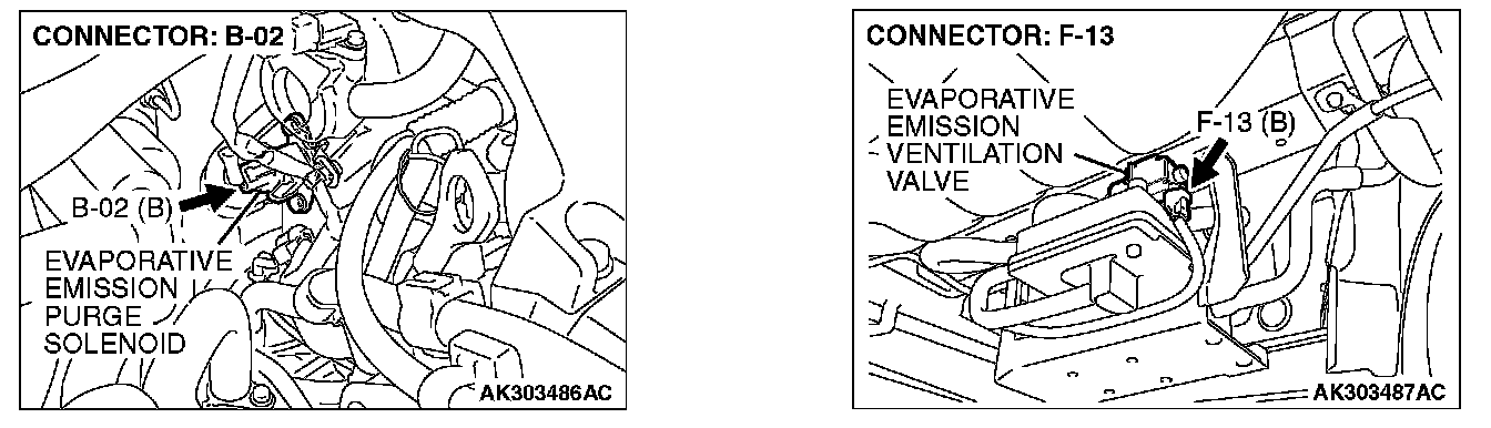 2. Set scan tool MB991958 to the actuator test mode for item 29, Evaporative emission ventilation solenoid.