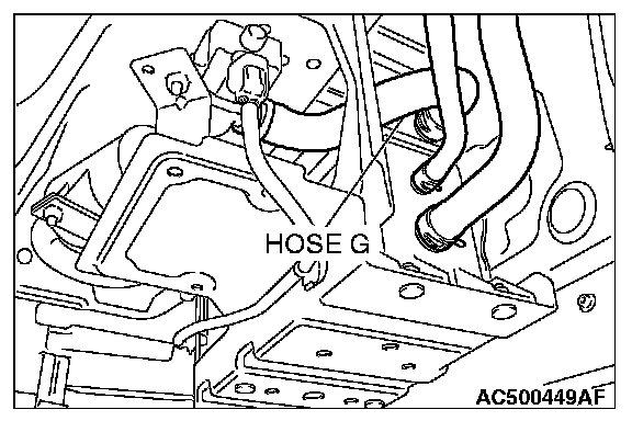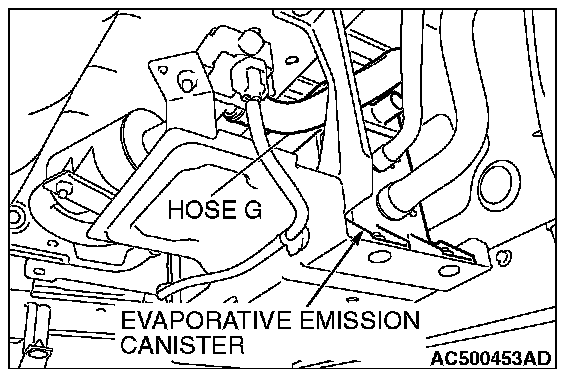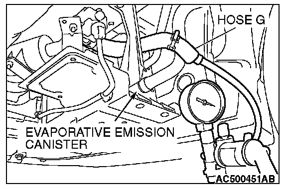2. Disconnect hose G from the evaporative emission canister side, and connect a hand vacuum pump.