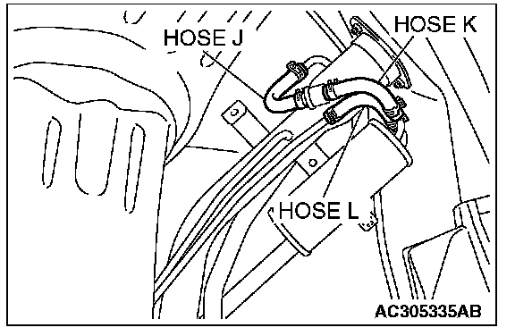 STEP 8. Check for leaks in evaporative emission hoses H, J, K and L.