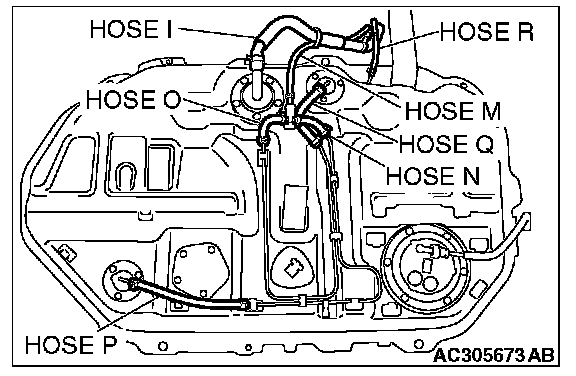 STEP 10. Check for leaks in evaporative emission hoses I, M, N, O, P, Q and R.