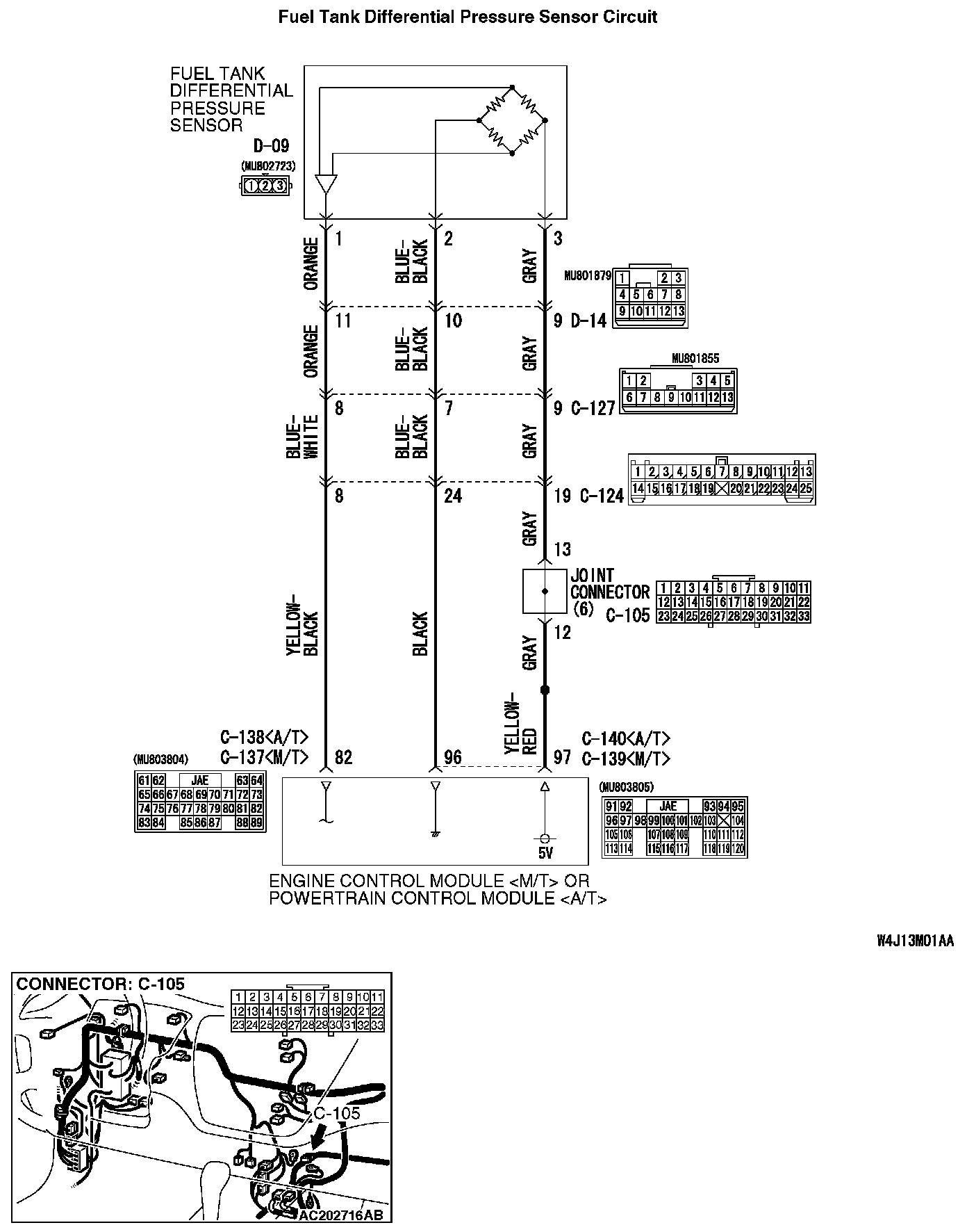 - The fuel tank differential pressure sensor (terminal 1) returns a voltage signal to the ECM