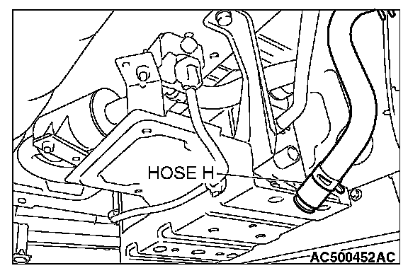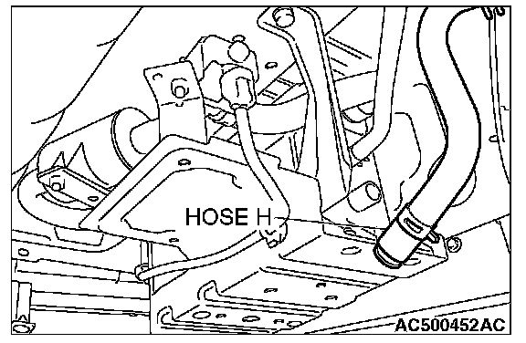 1. Disconnect hose H from the evaporative emission canister side, and plug the hose.