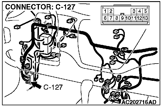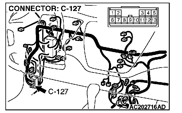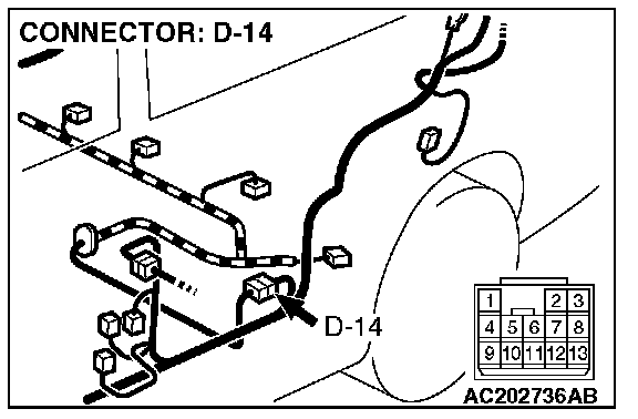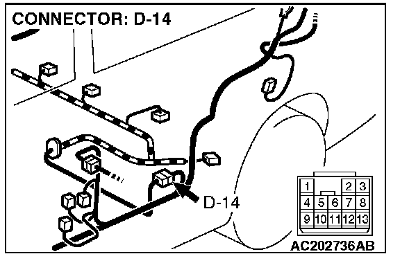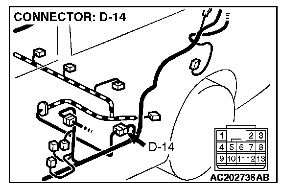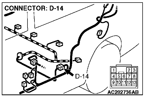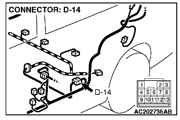 STEP 2. Measure the signal voltage at intermediate connector D-14 by backprobing.