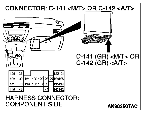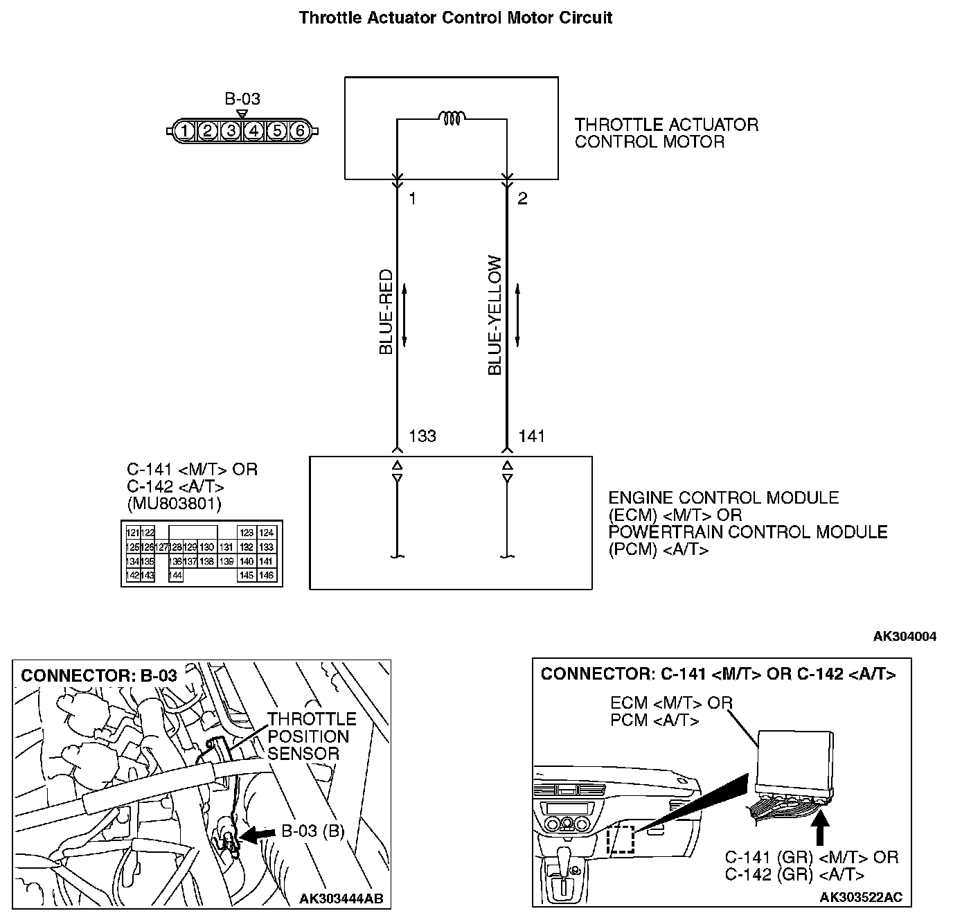 STEP 4. Check for short circuit to ground and harness damage between throttle actuator control motor connector B-03 (terminal No. 1) and ECM connector C-141