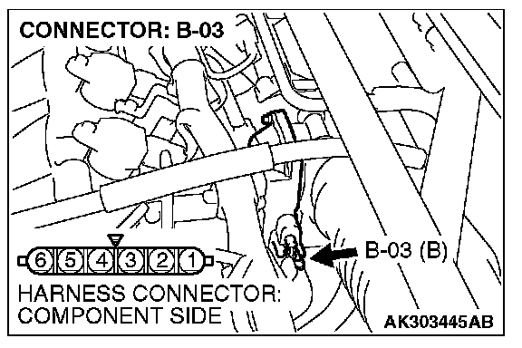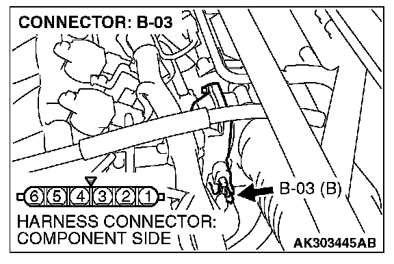 STEP 1. Check harness connector B-03 at throttle actuator control motor for damage.