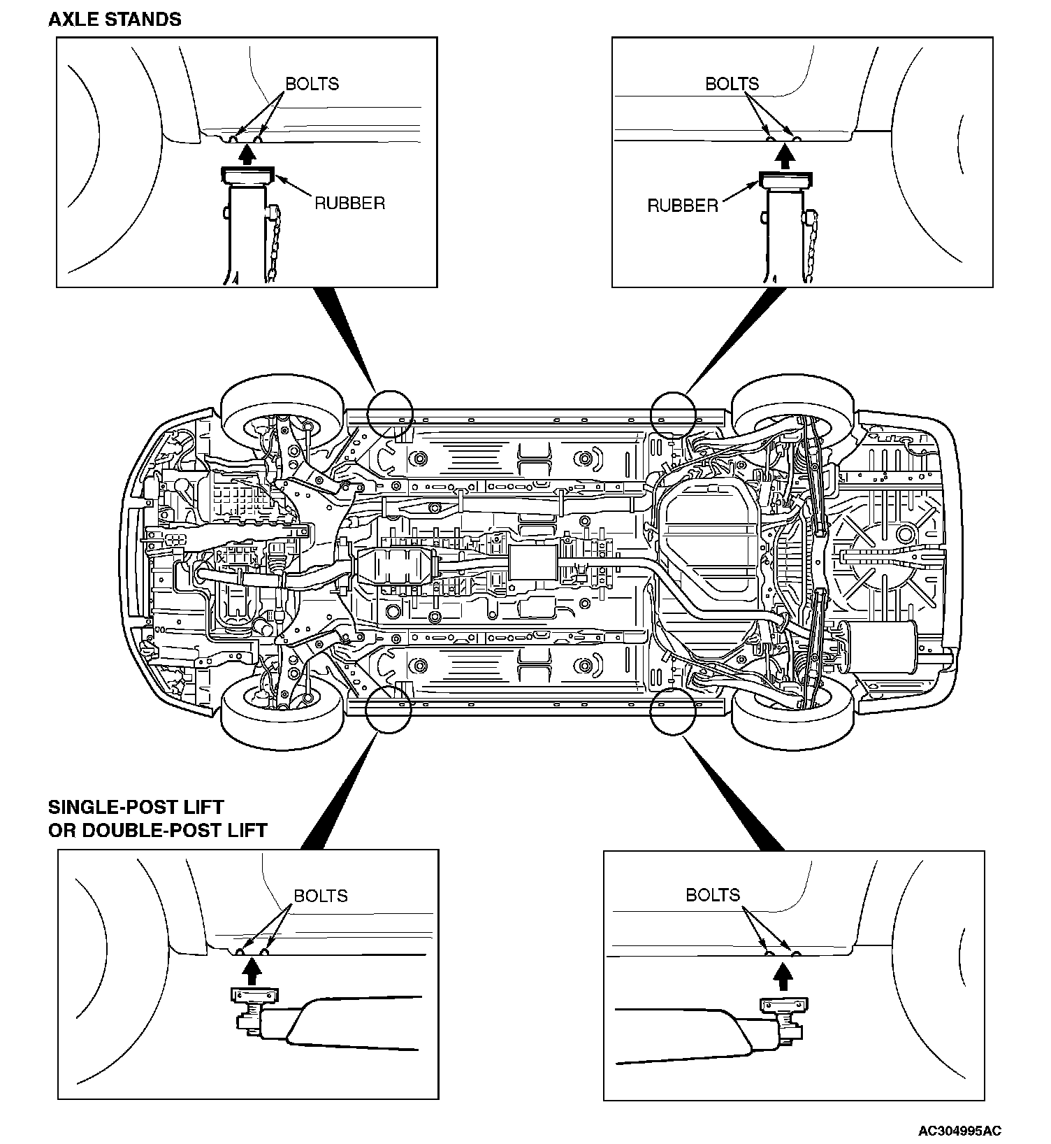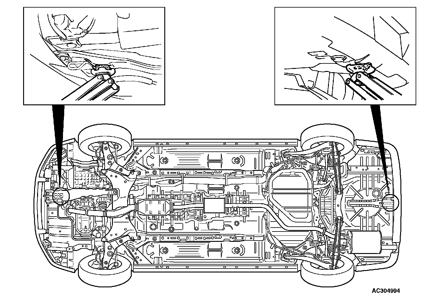 CAUTION: Do not support the vehicles at locations other than specified supporting points. Doing so will cause damage, etc.