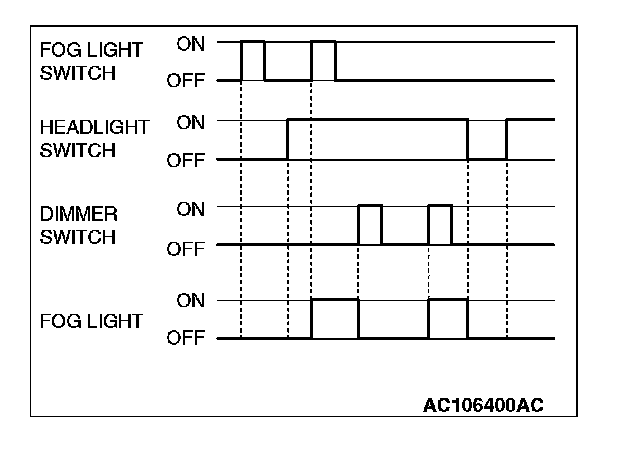 NOTE: This description covers the fog lights only. In actual driving, the fog lights may be turned off due to the headlight automatic shut-down function.