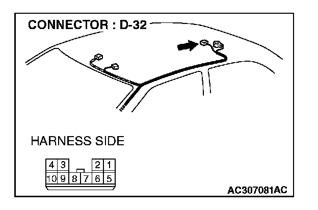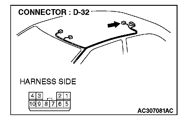 STEP 1. Check sunroof motor assembly connector D-32 for loose, corroded or damaged terminals, or terminals pushed back in the connector.