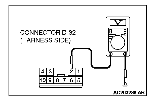 STEP 4. Check the ignition switch (IG2) circuit to the sunroof motor assembly. Measure the voltage at sunroof motor assembly connector D-32.