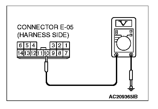 3. Measure the voltage between terminal 10 and ground.