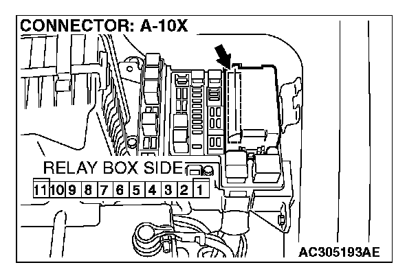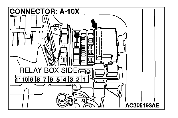 STEP 3. Check the front-ECU connector A-10X for loose, corroded or damaged terminals, or terminals pushed back in the connector.