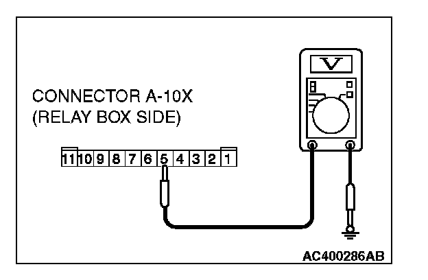 1. Disconnect front-ECU connector A-10X and measure the voltage available at the relay box side of the connector.