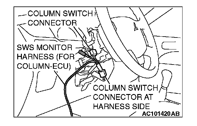2. Connect SWS monitor kit MB991813 to the column switch connector.