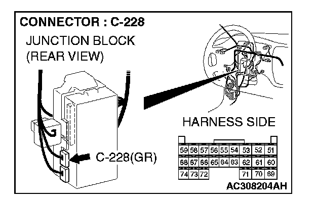 STEP 3. Check at ETACS-ECU connector C-228 in order to check the high-beam indicator light circuit.