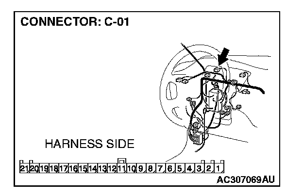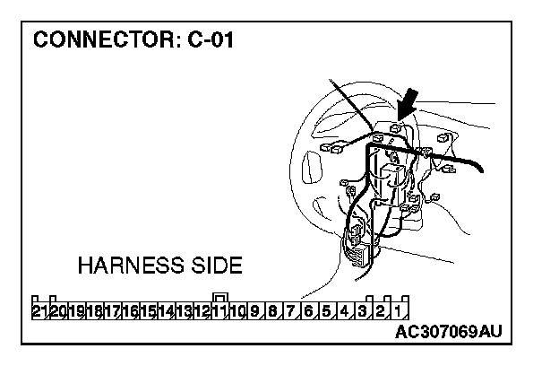 STEP 4. Check combination meter connector C-01 for loose, corroded or damaged terminals, or terminals pushed back in the connector.