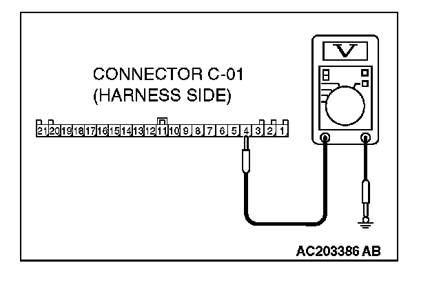 1. Disconnect combination meter connector C-01 and measure the voltage available at the wiring component side of the connector.