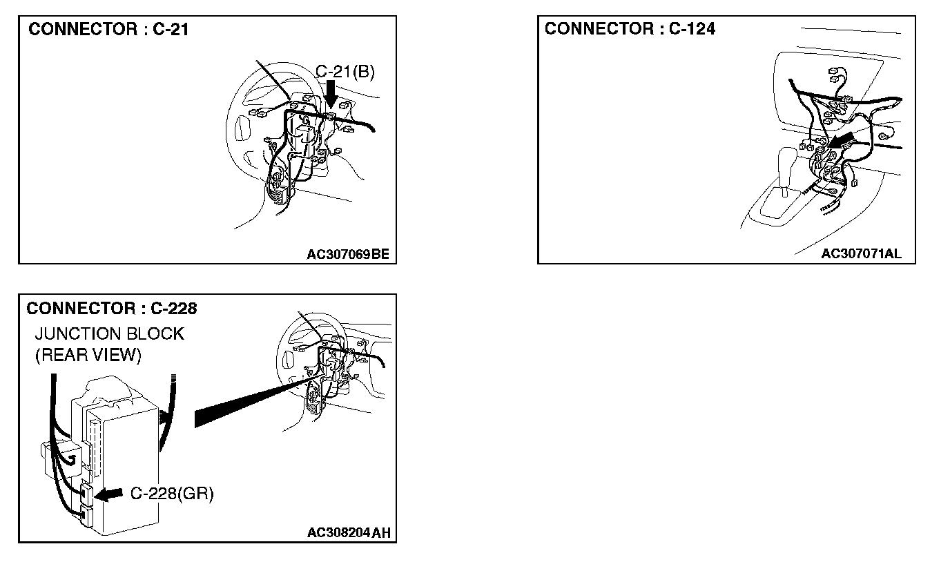 NOTE: Also check intermediate connector C-124 and joint connector C-21 for loose, corroded, or damaged terminals, or terminals pushed back in the connector. If intermediate connector C-124 or joint connector C-21 is damaged, repair or replace the damaged component(s) as described in Harness Connector Inspection.