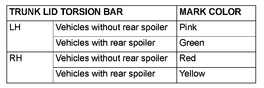 1. Identify the LH and RH torsion bars by the color mark made at the center of each torsion bar.