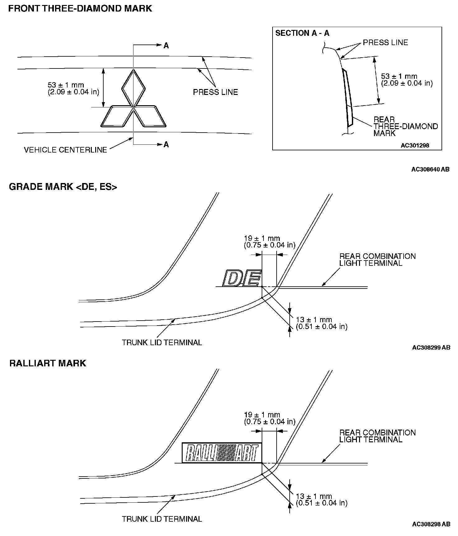 CAUTION: When attaching the marks, the ambient temperature should be 20 - 38° C (60 - 100° F) and the air should be completely free of dust. If the ambient temperature is lower than 20° C (60° F), the marks and the places on the vehicle body where the marks are to be attached should be heated to 20 - 38° C (60 - 100° F).