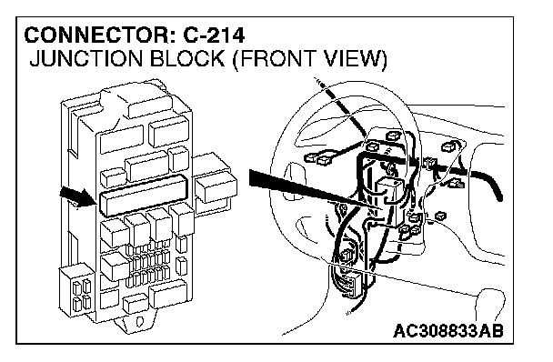 STEP 6. Check junction block C-214 for loose, corroded damaged terminal, or terminals pushed back in the connector.