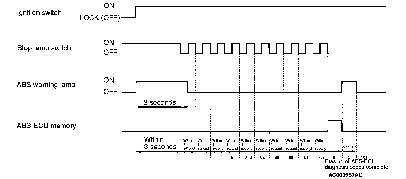NOTE: If the ABS-ECU functions have stopped due to the fail-safe function, the diagnostic trouble code cannot be erased.
