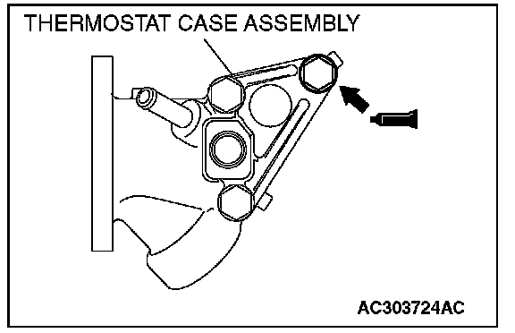 4. With the sealant still wet (within 15 minutes after the sealant is applied), install the thermostat case. Do not apply the sealant in an area more than the required.