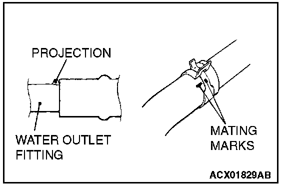 2. Align the mating marks on the radiator hose and hose clamp, and then connect the radiator hose.