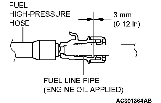 CAUTION: After connecting the fuel high-pressure hose, slightly pull it to ensure that it is installed securely. Also confirm that there is a play approximately 3 mm (0.12 inch). Then install the stopper securely.