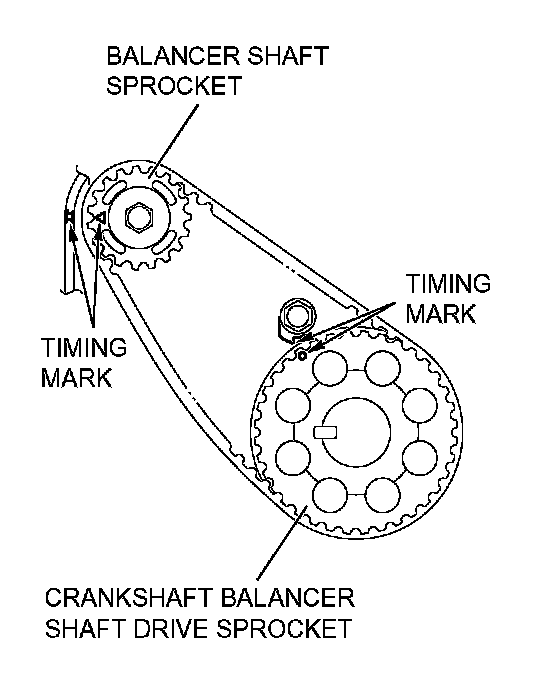 1. Ensure that the crankshaft balancer shaft drive sprocket timing marks and balancer shaft sprocket timing marks are aligned.