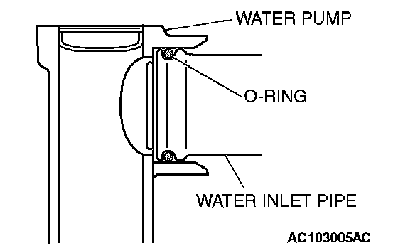 2. Wet the O-ring or the inner part of the water pump assembling area with water or coolant, then insert the water inlet pipe.