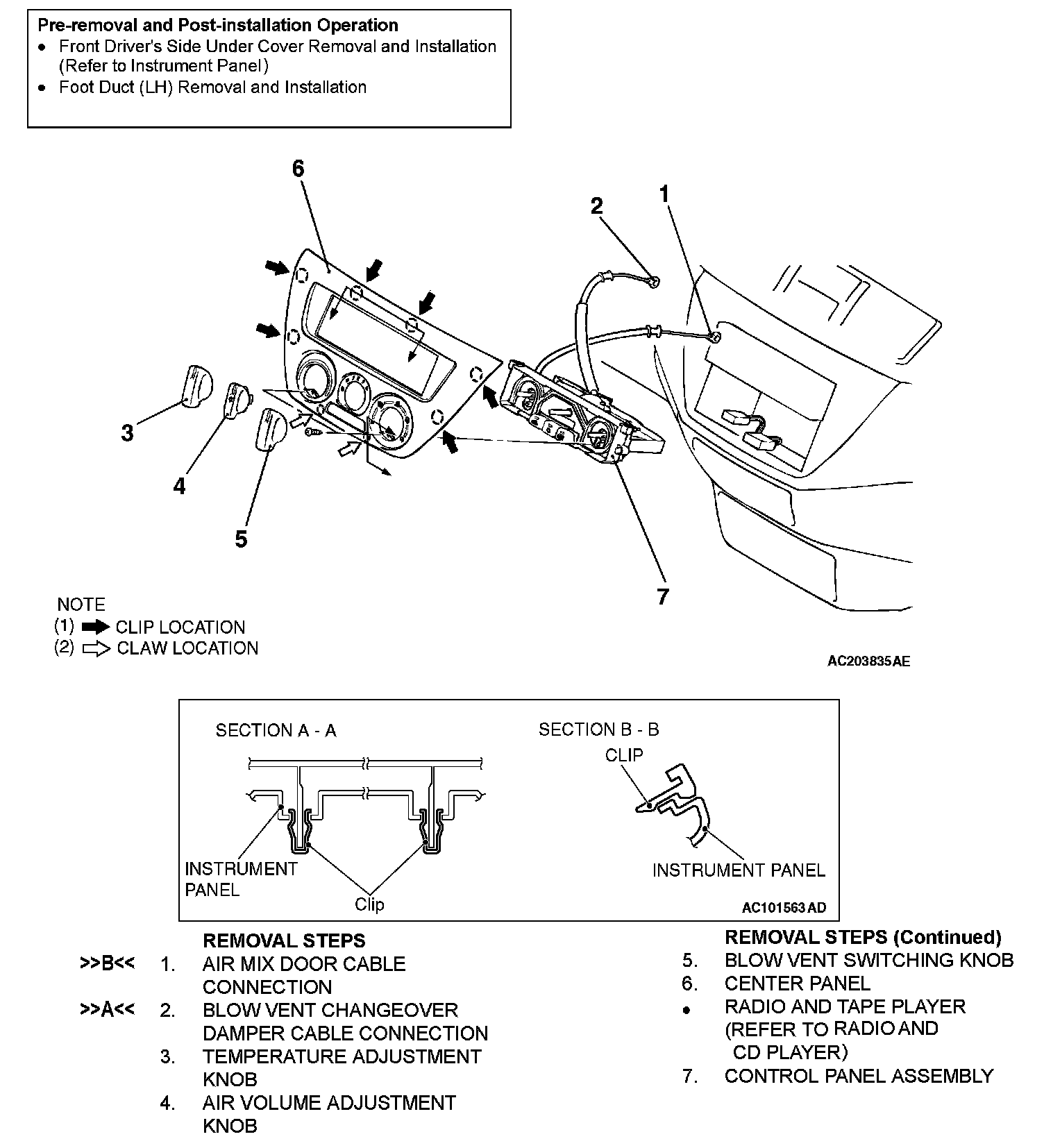 HEATER CONTROL ASSEMBLY AND A/C SWITCHHeater Control Assembly And A/C Switch - Removal And Installation: