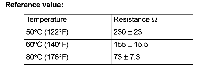 Standard value: 70 degrees C (150 degrees F) 104 ± 13.5 ohm