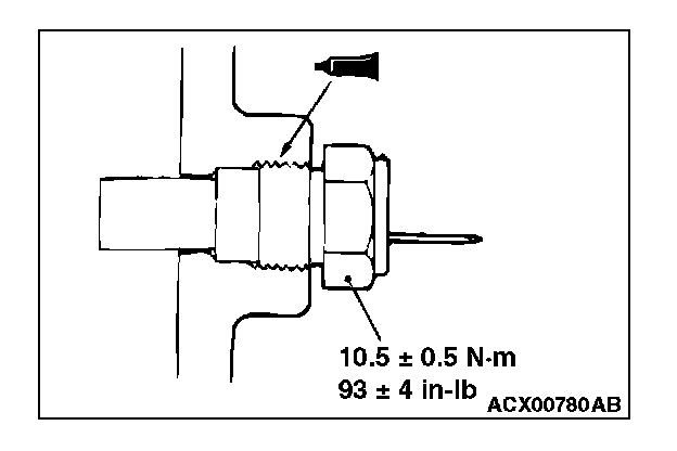 4. After inspection, apply specified sealant at threads of water temperature gauge unit, and tighten to the specified torque.