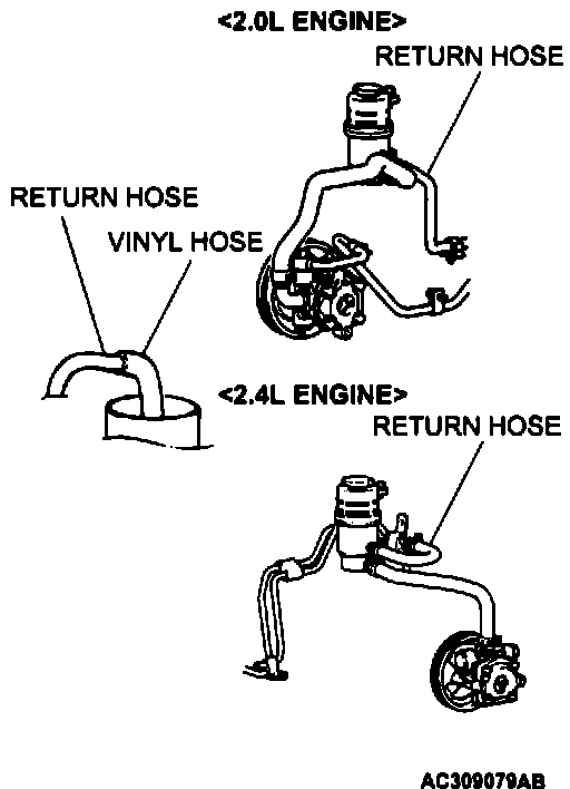 3. Connect a vinyl hose to the return hose, and drain the fluid into a container.