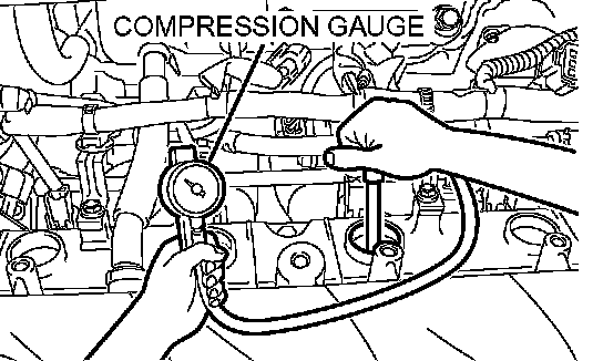 6. Crank the engine with the throttle valve fully open and measure the compression pressure.