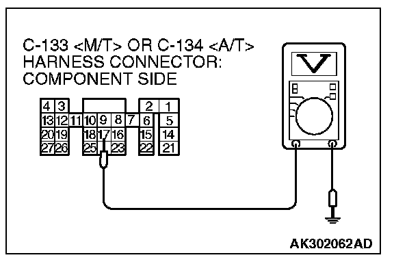 3. Measure the voltage between terminal No. 17 and ground.