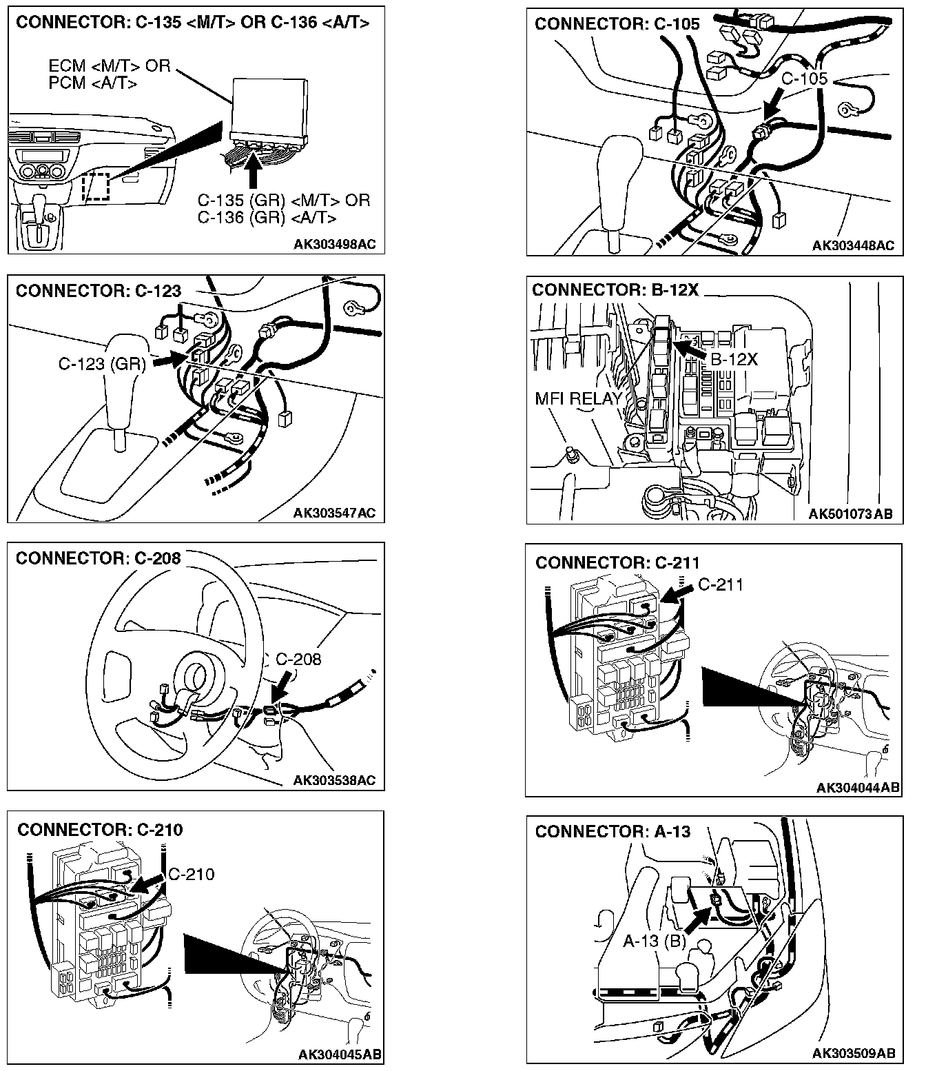 STEP 1. Check harness connector B-12X at MFI relay for damage.